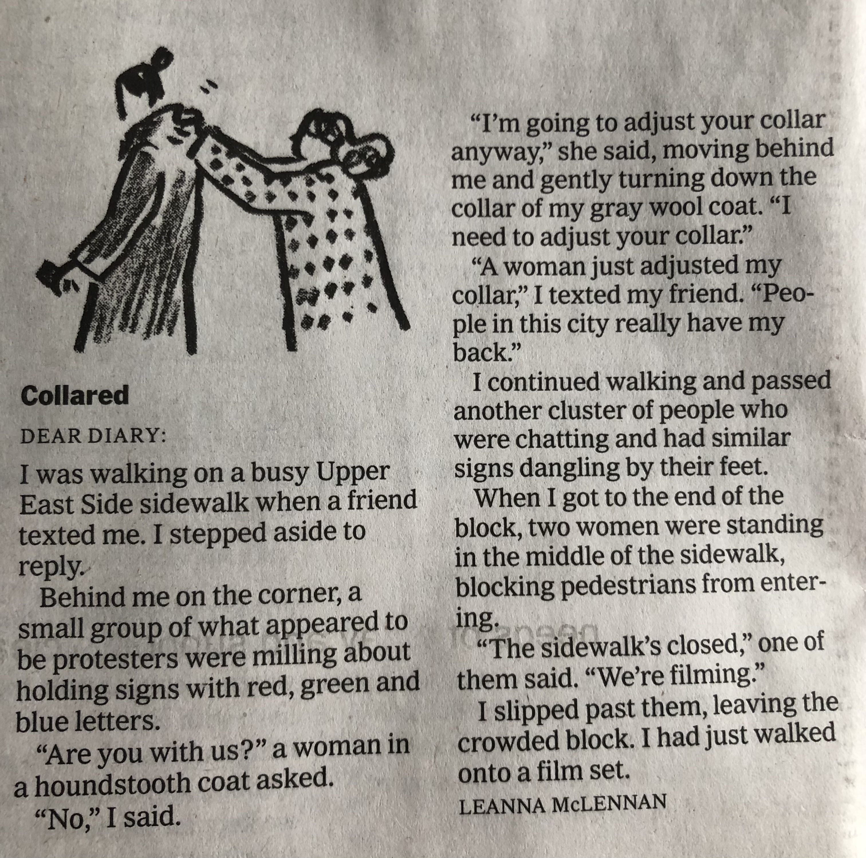 “Collared,” in “Metropolitan Diary,” New York Times. Feb. 26, 2023, p.MB4.